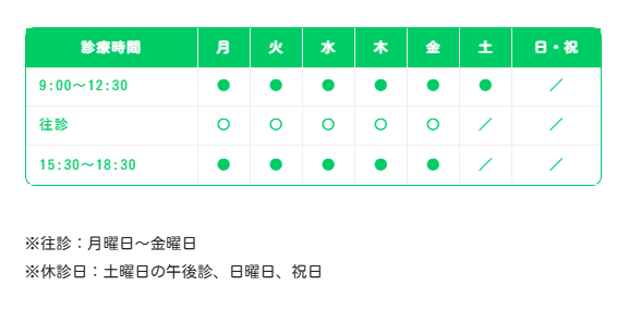 ※初診時に保険証の提示がない場合は、医療費は全額自由診療となりますので忘れずにお持ちください。
